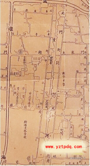 小編查找志書(shū)中地圖發(fā)現(xiàn),位于府衙、縣衙的東面,從舊城北門(mén)水關(guān)至南水關(guān)的這段市河,沿河附近設(shè)有縣學(xué)(現(xiàn)揚(yáng)大附小址)、文魁樓(今四望亭)、文廟(今政協(xié)),河上架有文津橋,橋上有文昌閣,上曾懸有“邗上文樞”匾額……揚(yáng)州的各類(lèi)文化殿堂都緊臨這段市河。相傳在古代這段市河被視為文脈,因此這段市河在民間被稱(chēng)為“文河”。