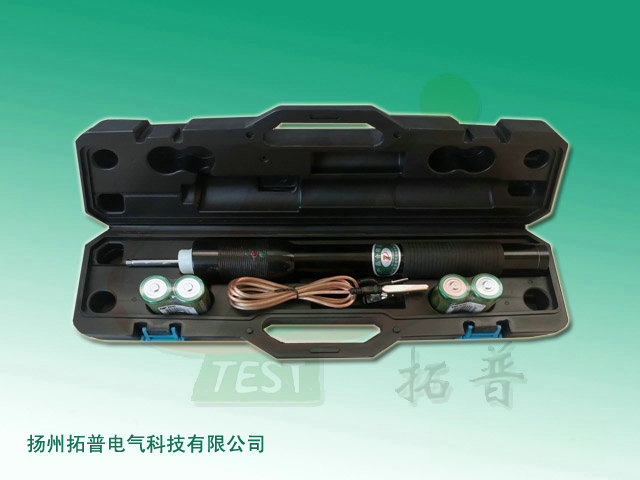 3、電源開關(guān)設(shè)在器身與頭部之間,任意方向旋轉(zhuǎn)90度,聽到“喀嗒”聲后即表示電源接通,反之為電源關(guān)閉。接通電源后綠燈亮,待紅燈亮(約3~5秒)即可通過頭部伸縮導(dǎo)電桿對避雷器計數(shù)器進(jìn)行測試。